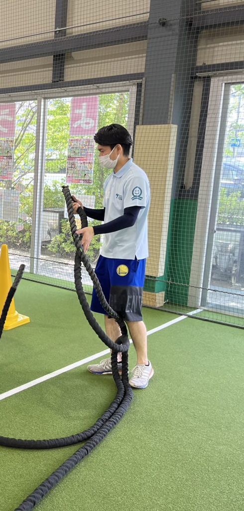 「フィットネスクラブでのパーソナルトレーナーと、キッズ現場で子どもの運動指導をやっています」
